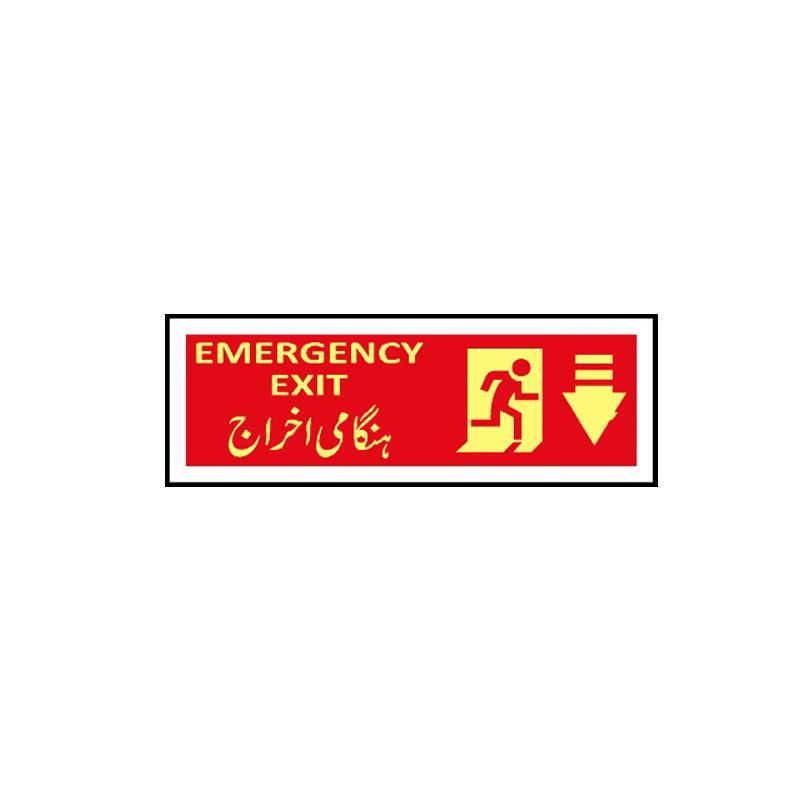An Emergency Exit Sign has safety messages for emergency response protocol and compliance, the sign also glows at night. An Emergency Exit Sign is a helpful resource to help protect the health and safety of personnel, and is not a substitute for required protective measures for reducing or eliminating hazards.