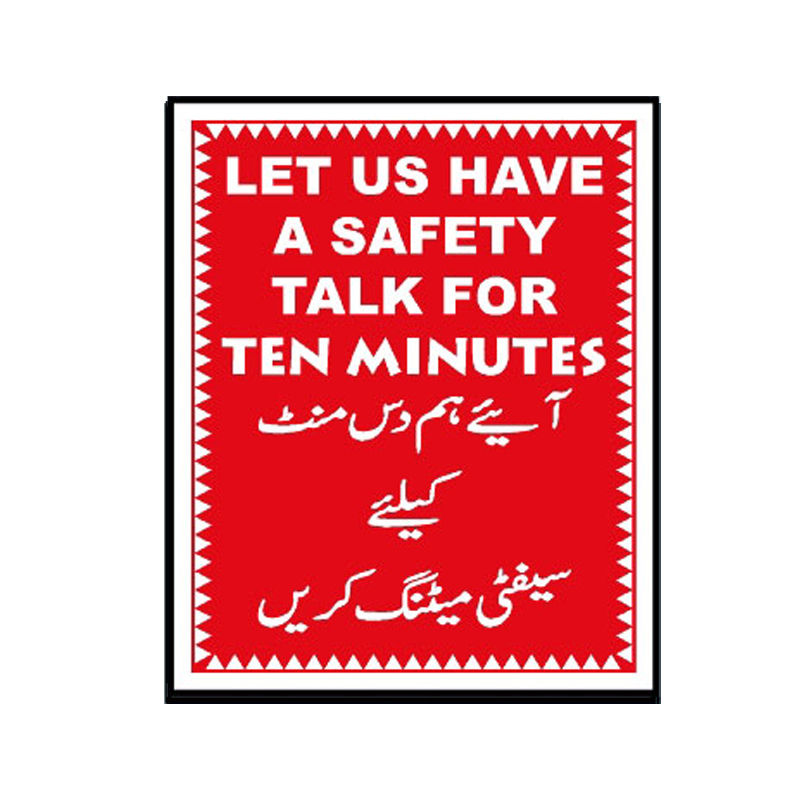Let Us Have A Safety Talk For Ten Minutes Sign uses informational messages for safety protocol and compliance. A Let Us Have A Safety Talk For Ten Minutes Sign is a useful tool to help protect the health and safety of personnel, but is not a substitute for required protective measures for eliminating or reducing hazards.